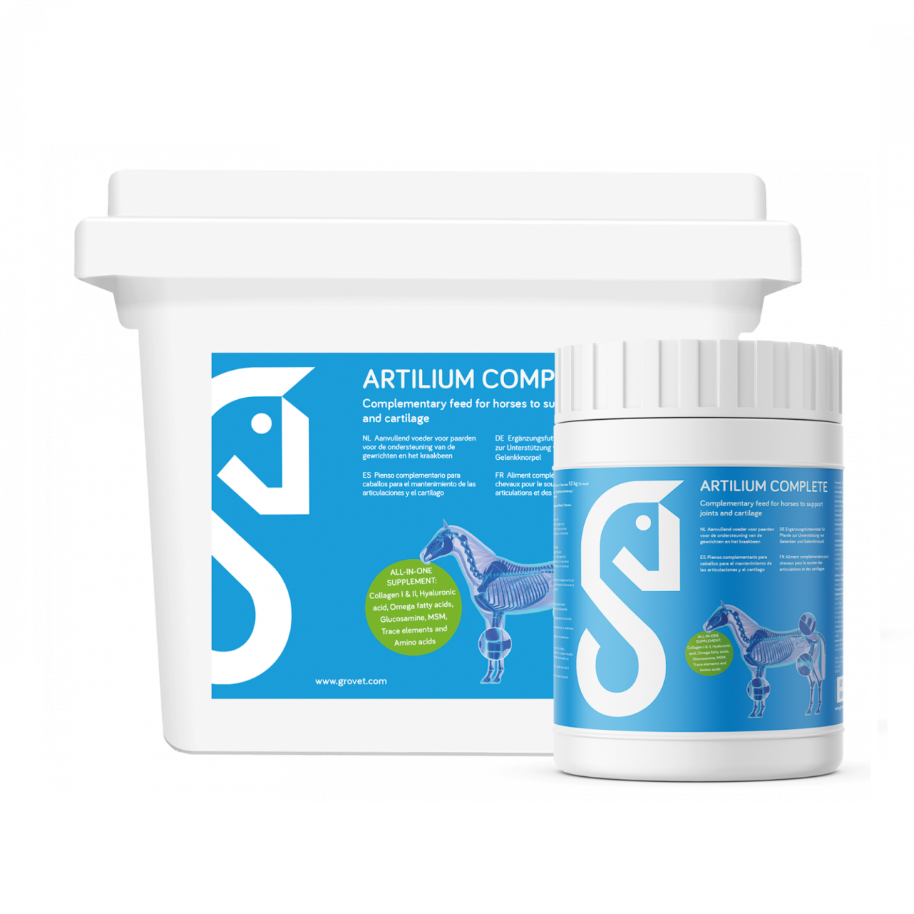 Artilium Complete is een aanvullend diervoeder voor paarden, ter ondersteuning van de gewrichten en het kraakbeen. Het is uitermate geschikt voor paarden die intensief getraind worden, wedstrijdpaarden en oudere paarden.