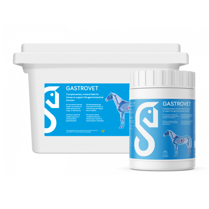 Gastrovet is een aanvullend mineraalvoeder voor paarden ter ondersteuning van de maag- en darmfunctie. Uitermate geschikt voor paarden die gevoelig zijn voor maagzweren en/of mestwater.