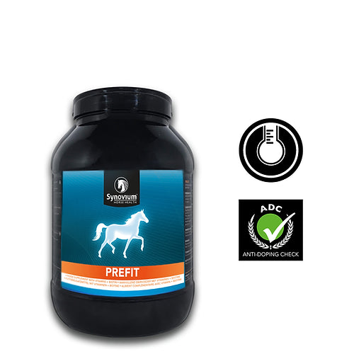 Synovium Prefit bevat essentiële mineralen die van belang zijn voor het onderhoud van het lichaam en verschillende vitale processen in het lichaam. Toevoeging van Synovium Prefit zorgt voor een gebalanceerd dieet en ondersteunt hiermee onder andere de weerstand van het paard. Dit supplement is zeer geschikt voor paarden die een hogere vitaminen en mineralen behoeften hebben door intensieve arbeid. Daarnaast is Synovium Prefit een goede toevoeging aan het dieet van paarden waarvan het dieet voornamelijk uit ruwvoer bestaat en weinig krachtvoer.
